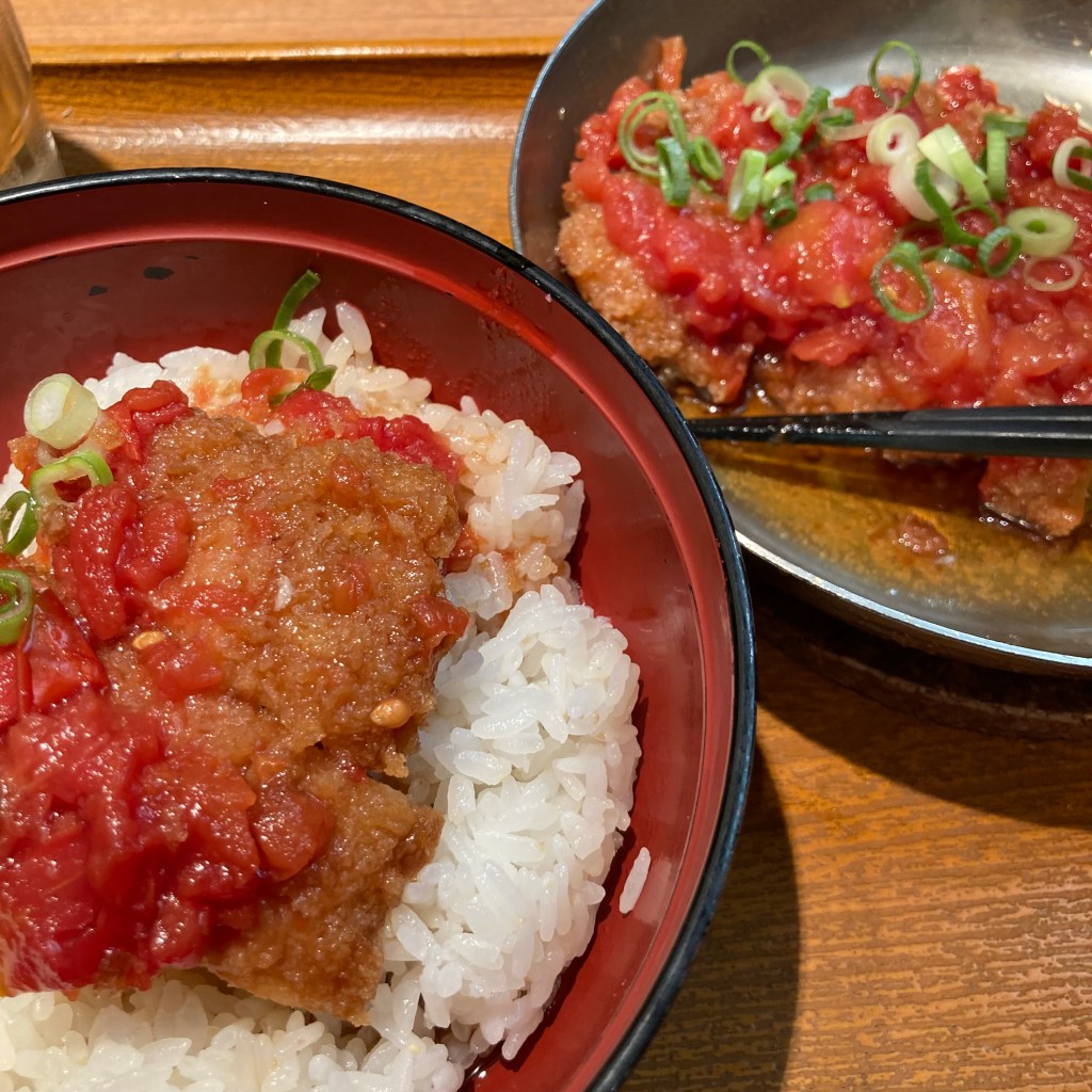 かつ丼なのにさっぱり。トマトの甘味と酸味が絶妙。「夏になると~」なんて書いているけど、冬でも食べる。